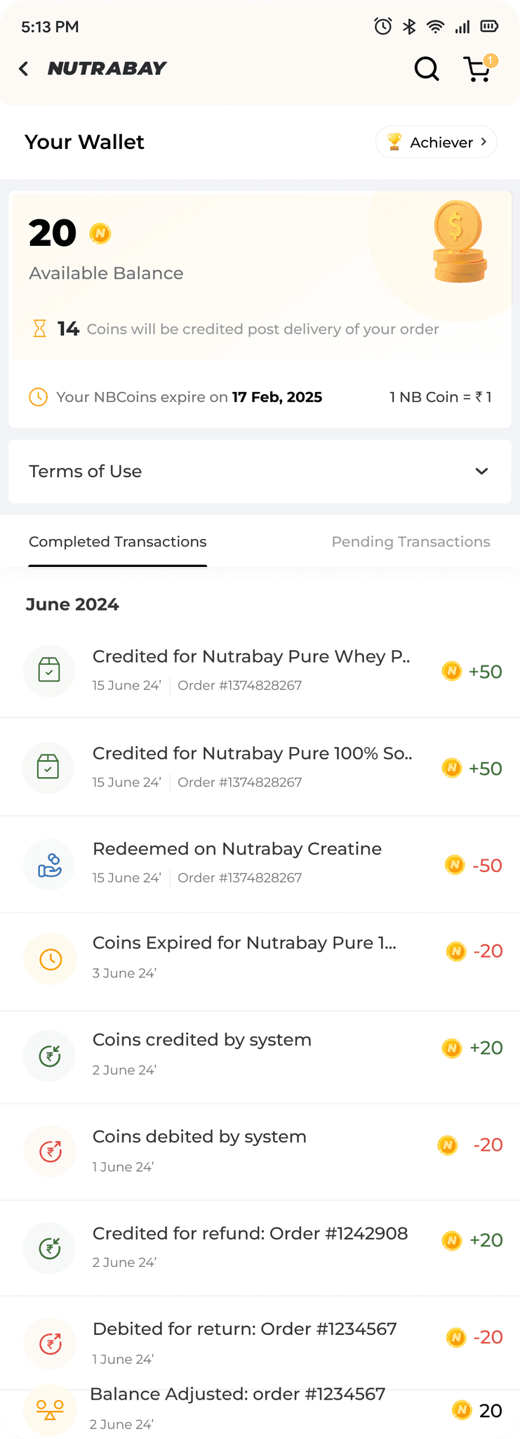 This page gives user the detail on their spending and balances of NB Coins. User also has the knowledge of their coins expiry.