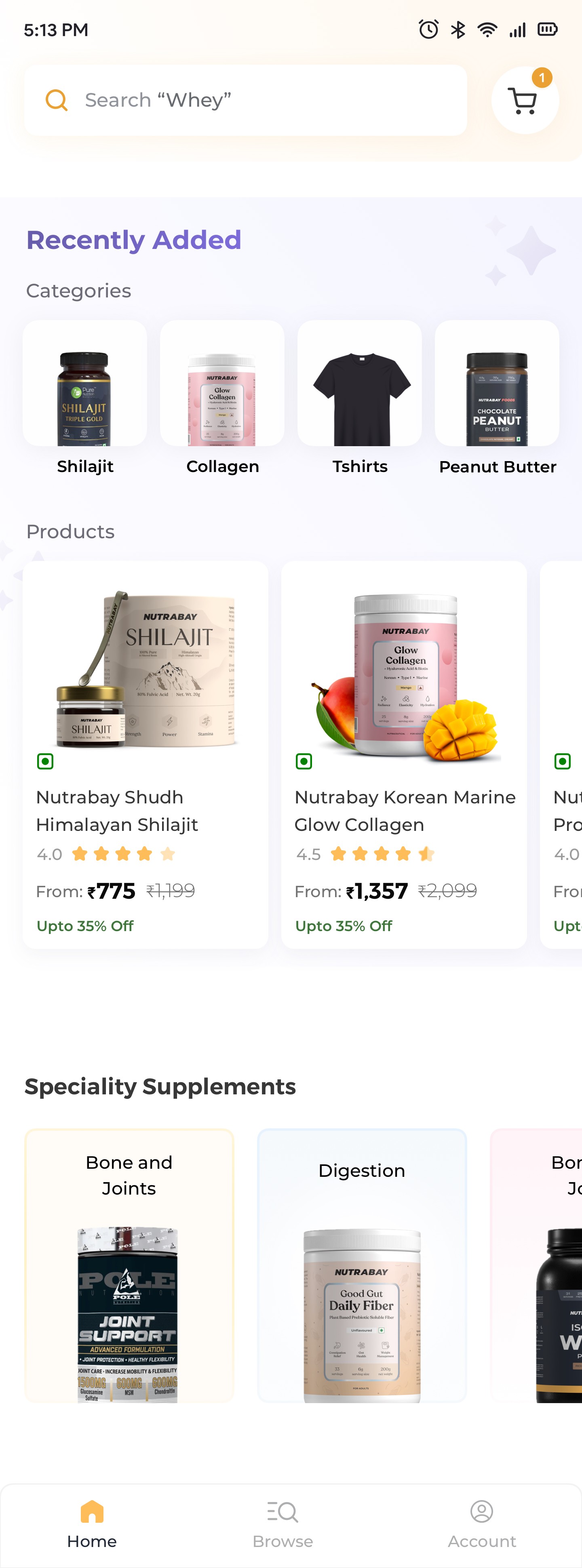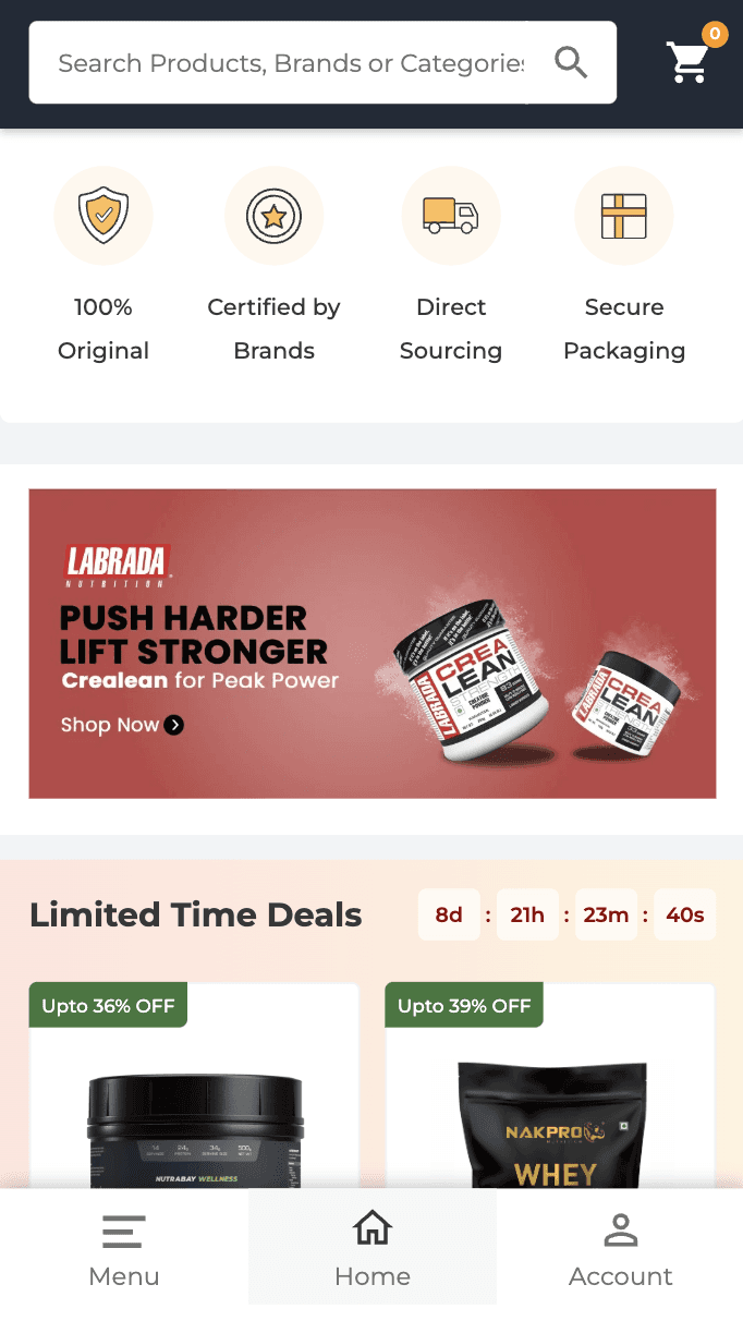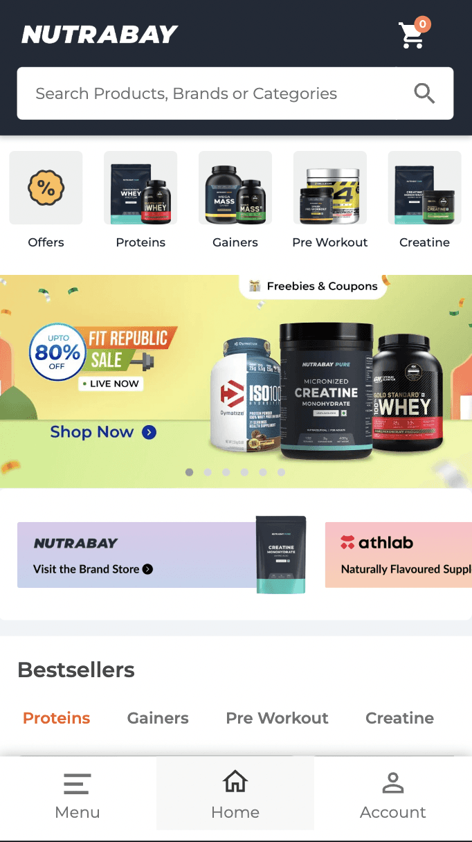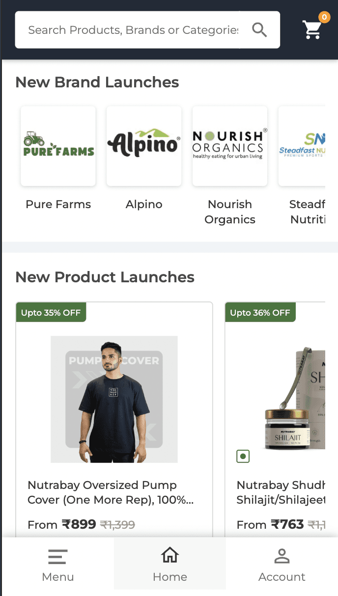 Nutrabay Homepage and Navigation